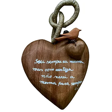 A escrita feita à mão adiciona um toque pessoal e único, fazendo de cada coração uma obra exclusiva. Produto 100% artesanal, perfeito para trazer calor e beleza a qualquer ambiente, seja como presente especial ou como um detalhe encantador na sua decoração.