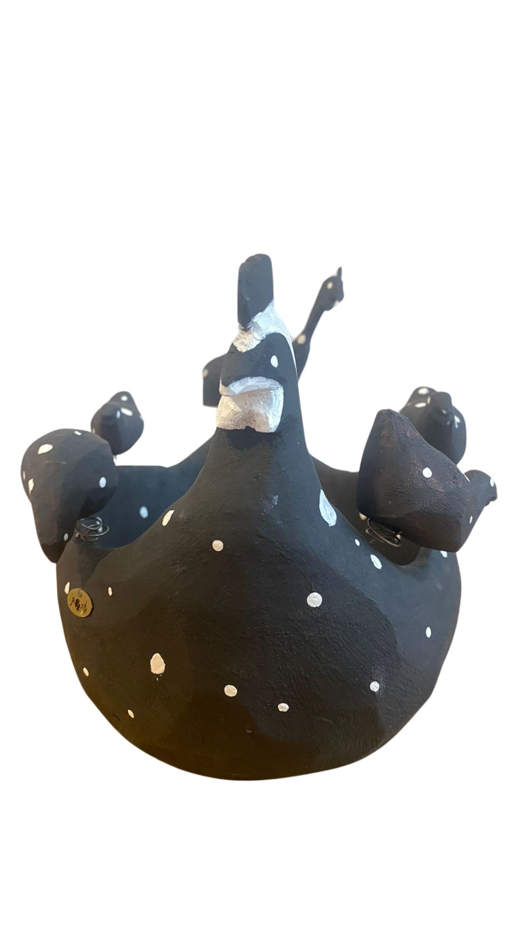 - Design: Riscada à mão, cada galinha possui um padrão único, conferindo personalidade e exclusividade à peça.