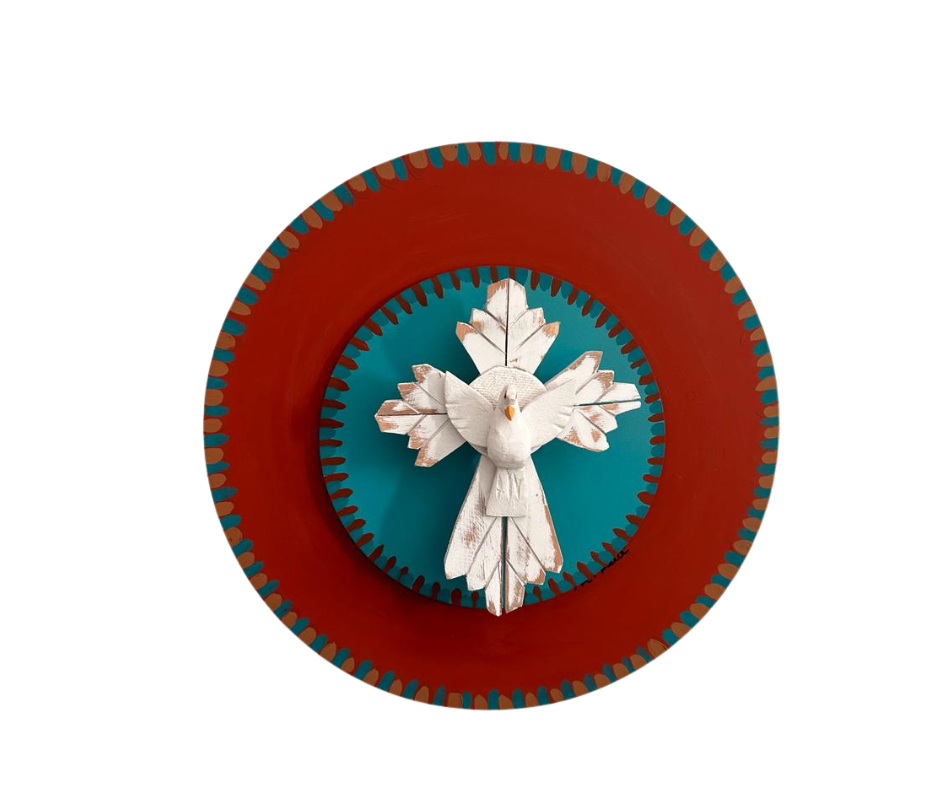 Mandala com base em mdf e divino esculpido na madeira maciça