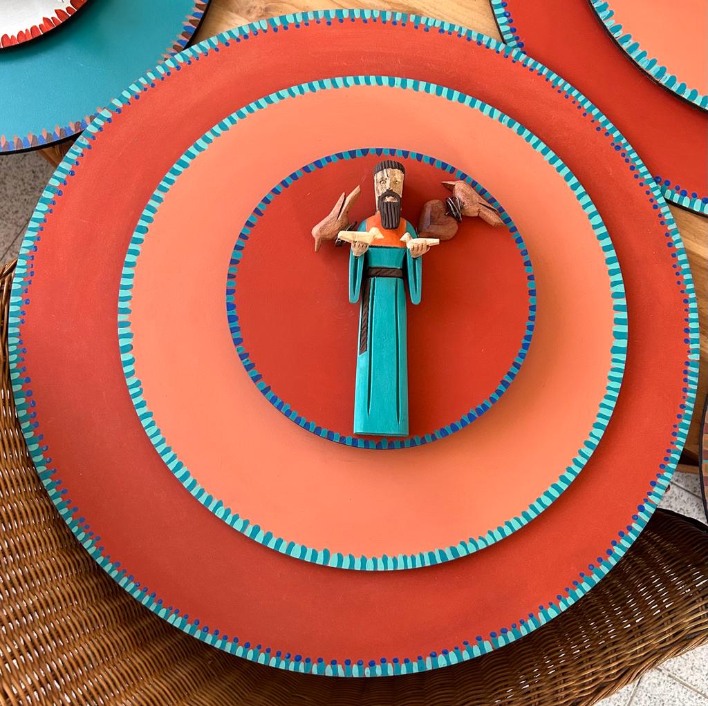 Mandala com base em mdf e são francisco esculpido na madeira maciça