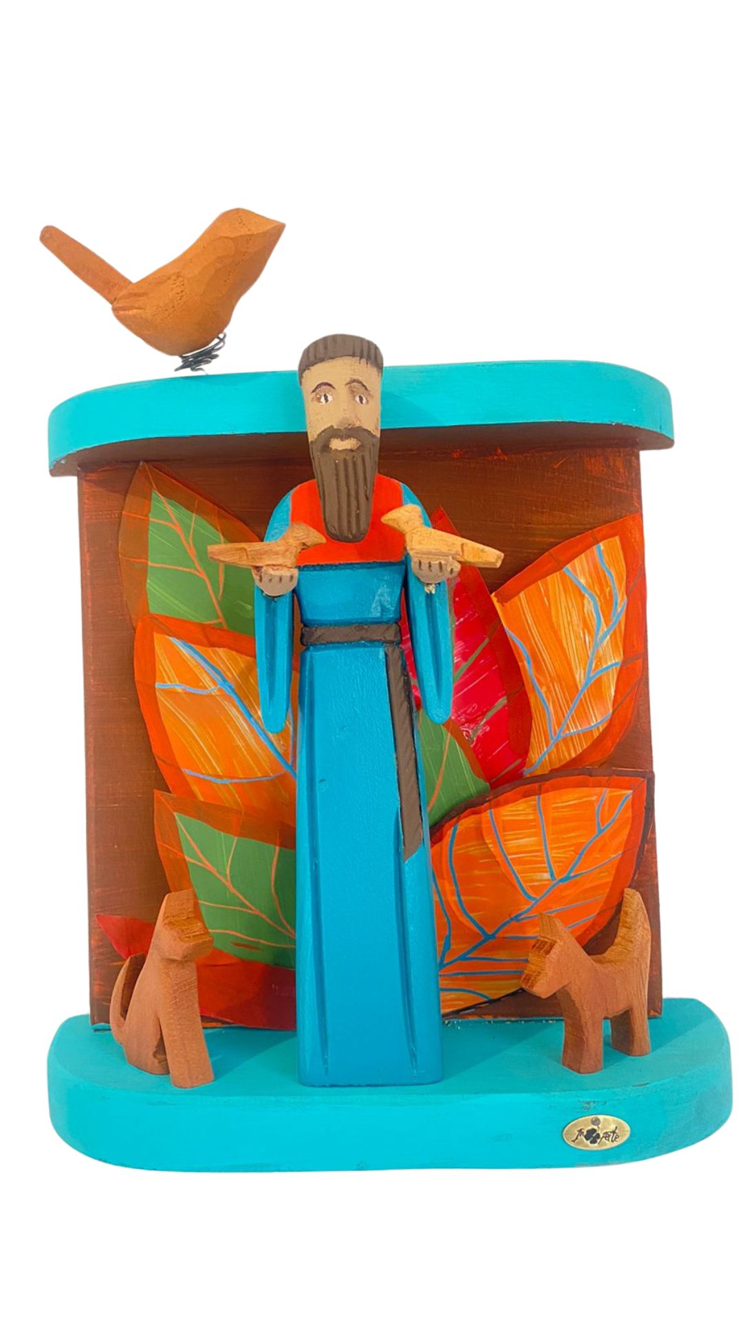 Cada elemento é cuidadosamente trabalhado e pintado, resultando em uma obra de arte vibrante e cheia de significado. Ideal para trazer um toque de devoção e beleza ao seu ambiente, o Oratório São Francisco Collor é uma expressão única de fé, perfeito para enriquecer qualquer espaço com seu charme artesanal e espiritualidade profunda.